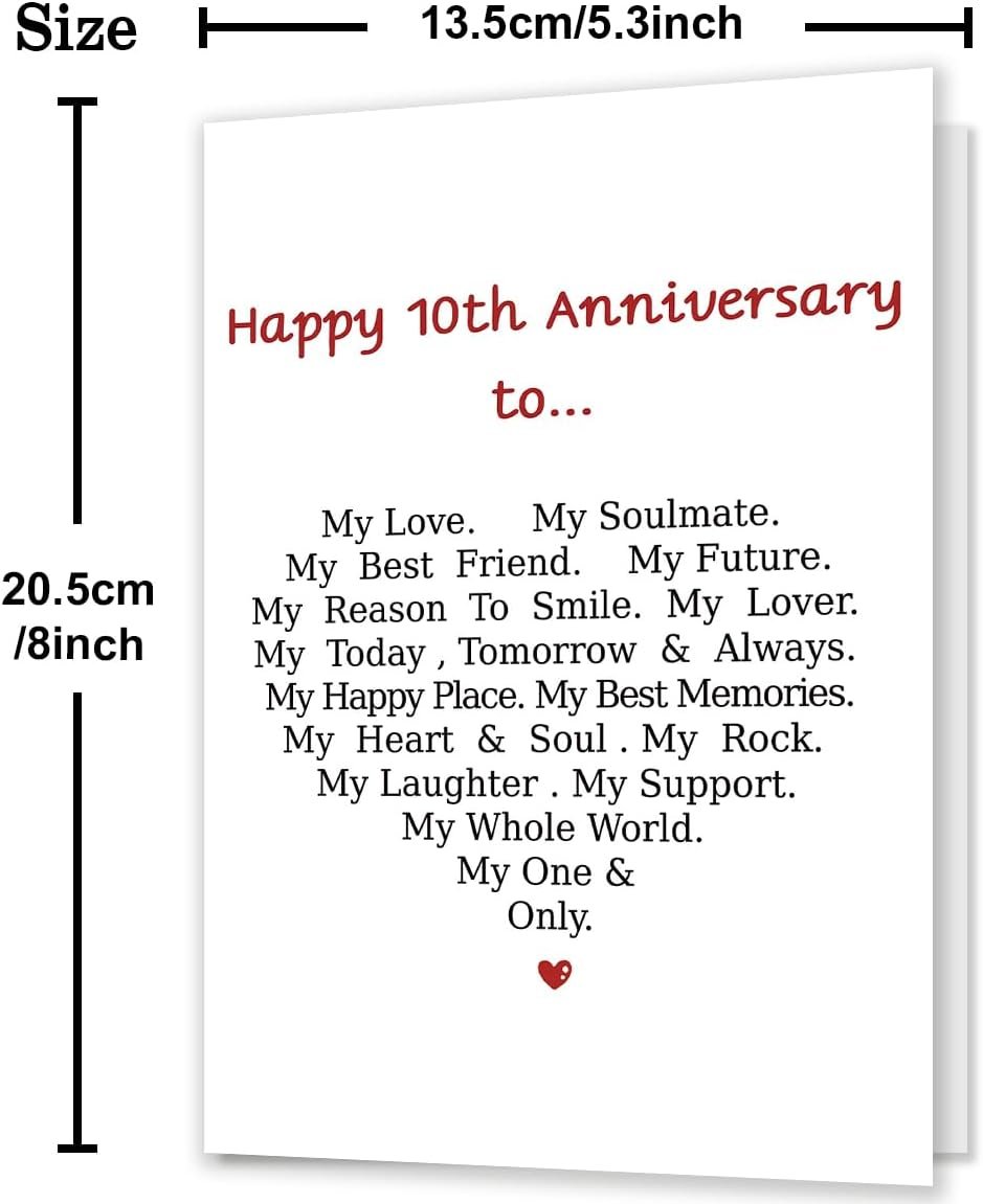 • Romantic 10th Anniversary Card,It is a perfect gifts for sending your girlfriend, boyfriend, husband, wife,friend or family.