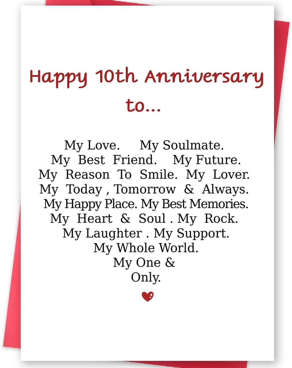 Funny 10th Anniversary Card For Men Women, Sweet 10 Year Wedding Anniversary Card Decoration For Husband Wife, Romantic Gifts Idea For Boyfriend Girlfriend Couple